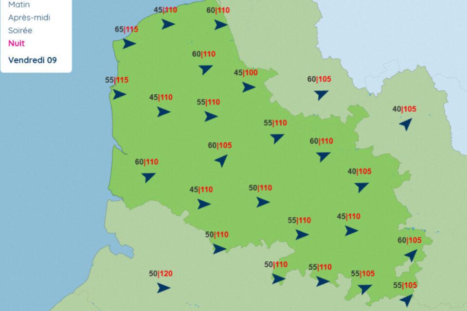Mêlées à la pluie, les plus fortes rafales seront enregistrées :