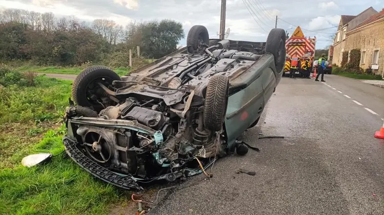 Un jeune d’une vingtaine d’années rate un virage et se retrouve sur le toit à Audembert