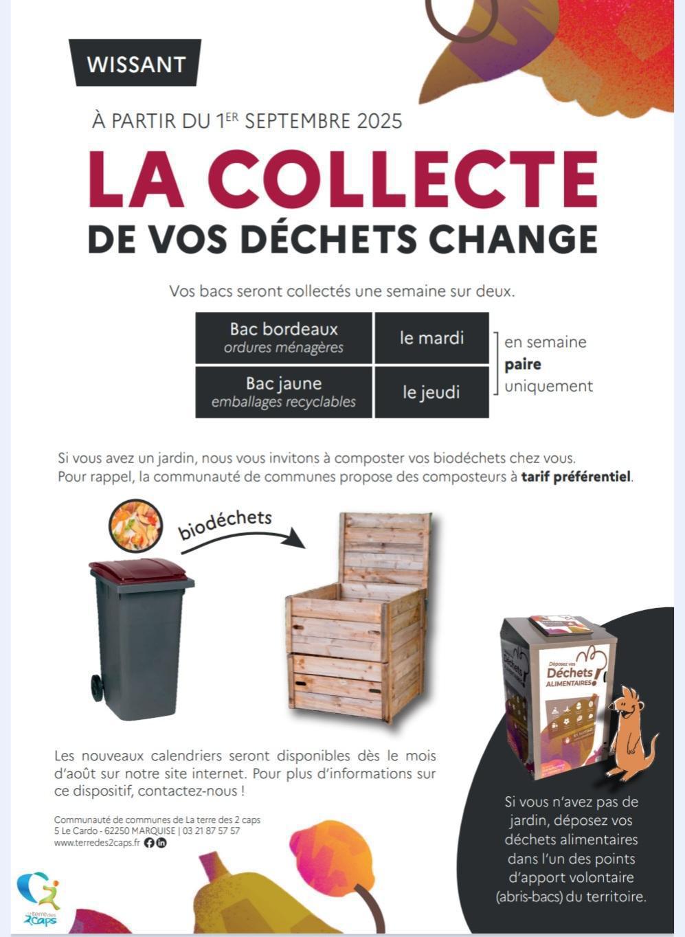 1) Calendrier de collecte - Changement d’organisation