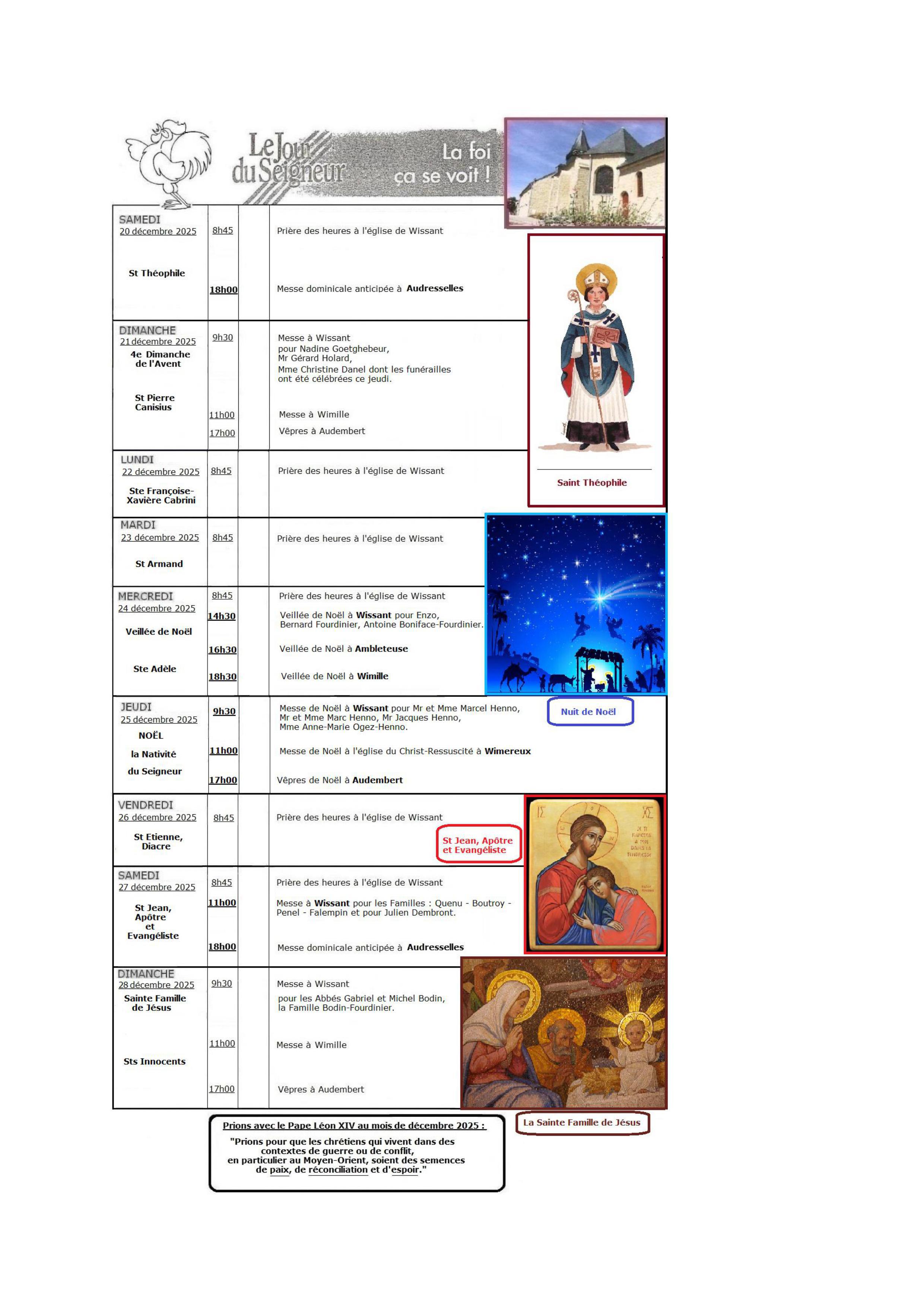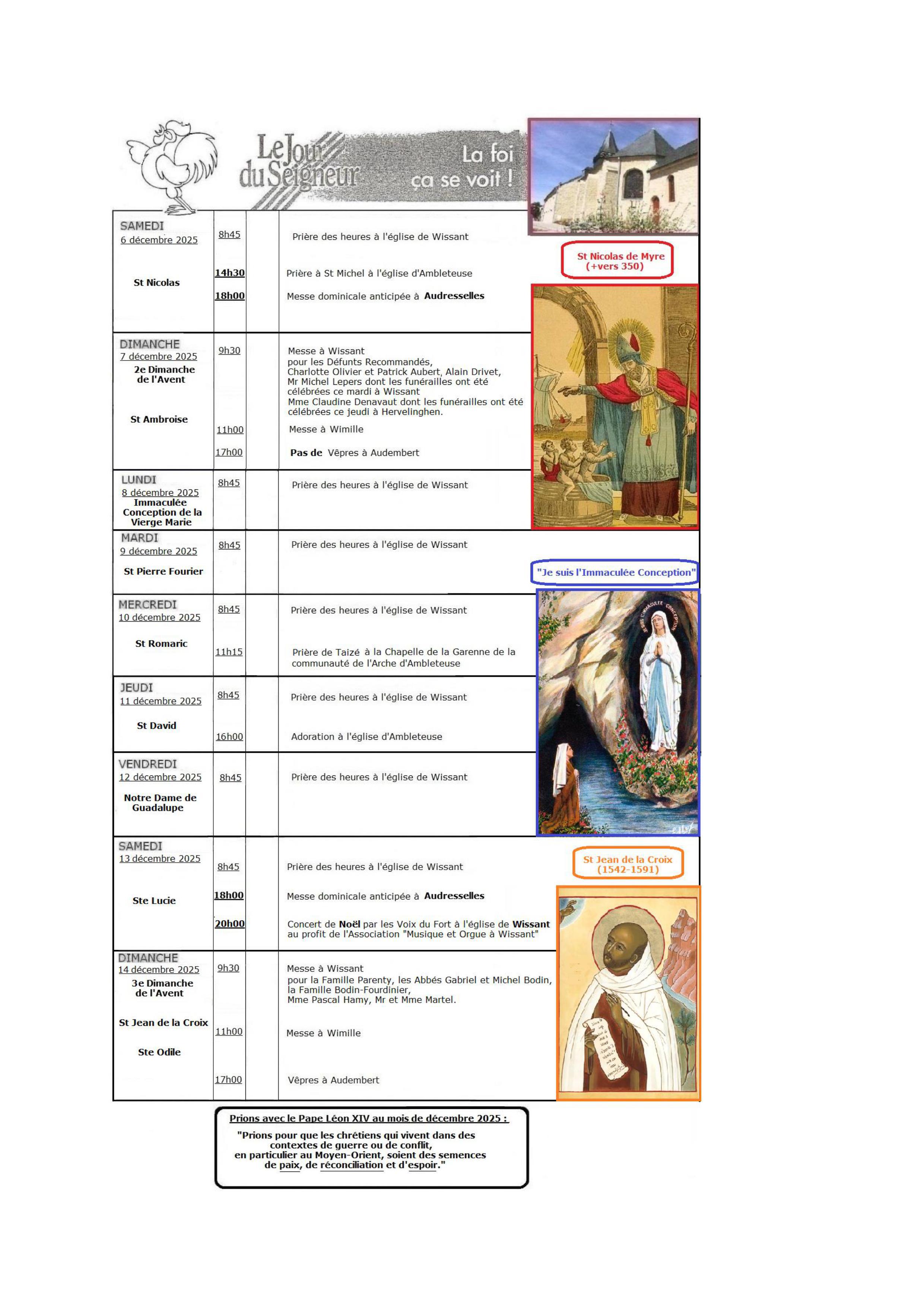 Et l'ensemble des horaires des différentes messes aux alentours.