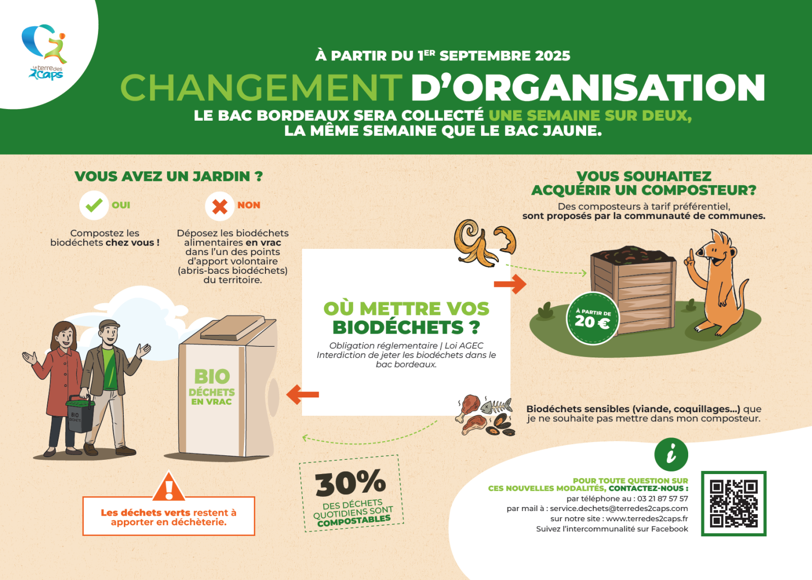 Si vous avez un jardin, nous vous invitons à composter vos biodéchets chez vous. Pour rappel, la communauté de communes propose des composteurs à tarif préférentiel.