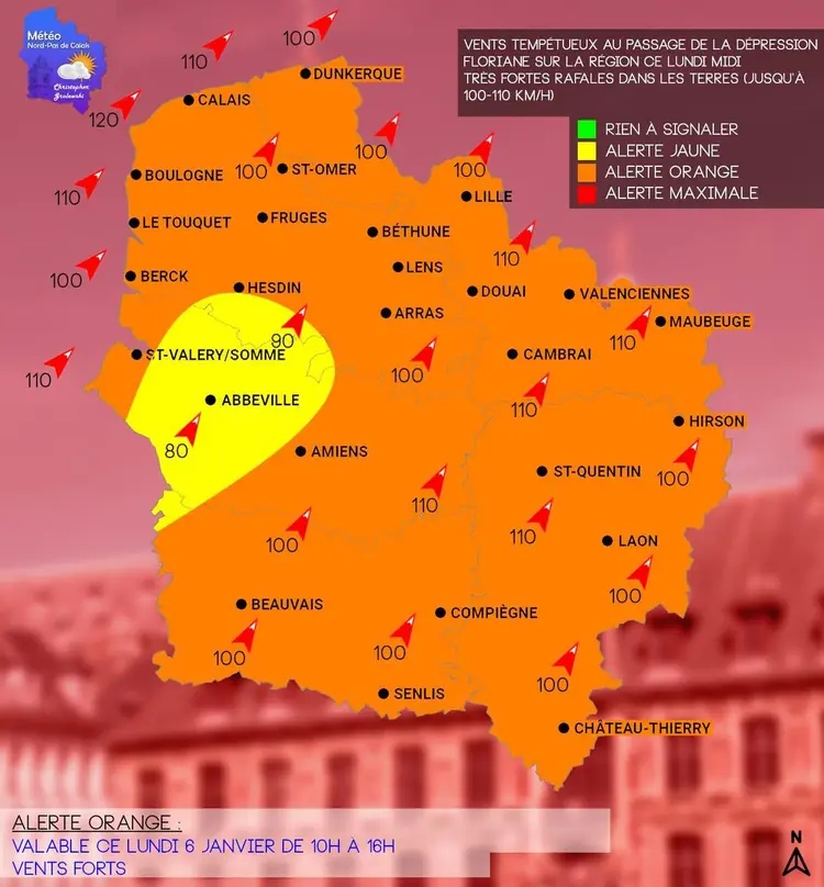 🟠 Alerte Orange: vents forts ce lundi 6 Janvier